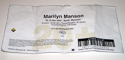Ticket for the Concert (27.11.2007 Zenith/Munich)