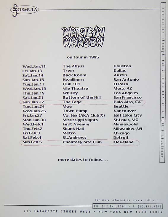 Original-Tourdatenblatt von 1995